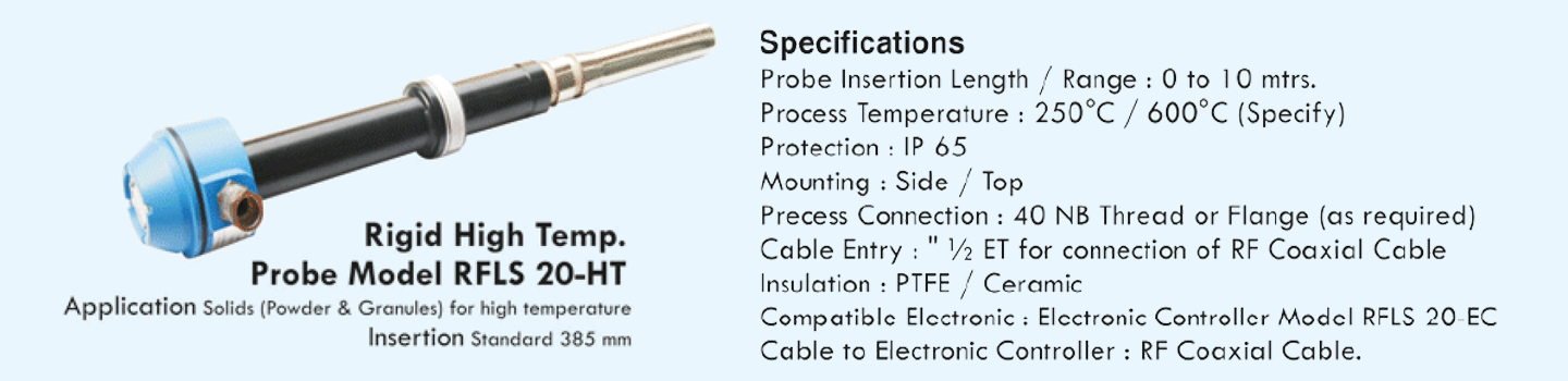 Application: Bucket Elevator Boot, Chute Blockage, Air Slid Jam Sensing & Hoppers/Vessels of Solids (Powder & Granules) & large particles upto 400 mm. Insertion Zero Insertion (flushed with inner surface)